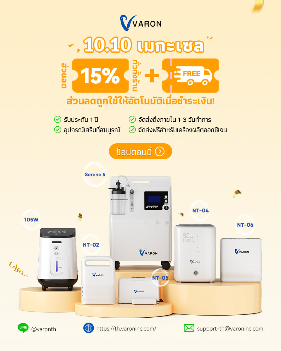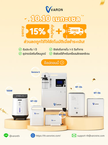 แบรนด์ VARON ก่อตั้งขึ้นในปี 2021 มุ่งมั่นพัฒนาเครื่องผลิตออกซิเจนที่มีประสิทธิภาพและคุ้มค่าสำหรับผู้ที่ต้องการออกซิเจน ผลิตภัณฑ์ของเราได้รับความนิยมอย่างกว้างขวาง โดยได้จำหน่ายแล้วในกว่า 10 ประเทศ เช่น ประเทศไทย สหรัฐอเมริกา สหราชอาณาจักร เป็นต้น มีลูกค้ามากกว่า 40,000 ราย ที่ไว้วางใจเลือกใช้ และเรายังคงมุ่งมั่นที่จะเปลี่ยนออกซิเจนให้เป็นพลังแห่งชีวิตและการฟื้นฟู...